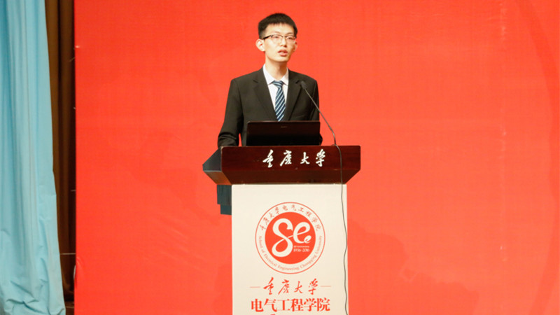 2013级本科生李林威代表在校学生分享了学习、生活、社团工作等,表示重大电气的传统已融入血液,他们将坚定理想,砥砺品格,勤奋学习,开拓创新,传承电气80年精神,为成长为具有远大理想和抱负,知识能力素质协调发展,能够适应和驾驭未来的电气工程人才不懈努力。