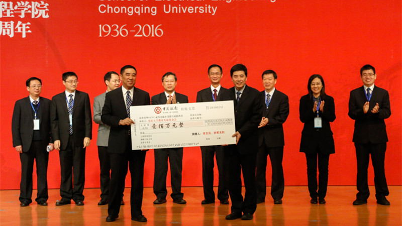 80年来学院的每一点进步和成绩都离不开广大院友和社会各界友好人士的关心和支持。值此学院八十华诞之际,学院80周年院庆教育基金接收到重庆新鸥鹏集团1000万元人民币,李文沅孙军夫妇100万元人民币,重庆新世纪电气有限公司100万元人民币,盛弘电气、电源村10万元人民币以及广大院友来宾10余万元人民币的捐赠,用于支持学院的人才培养、师资队伍建设以及学科建设等。此外,学院还收到48届院友冯三义、68届院友周正文以及其他院友的珍贵史料捐赠、音乐版权捐赠等。