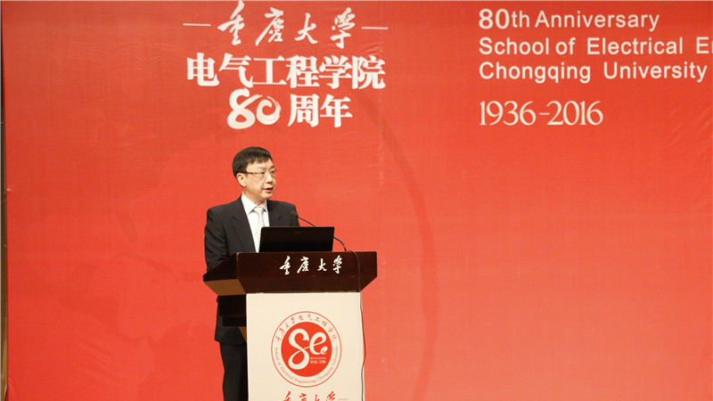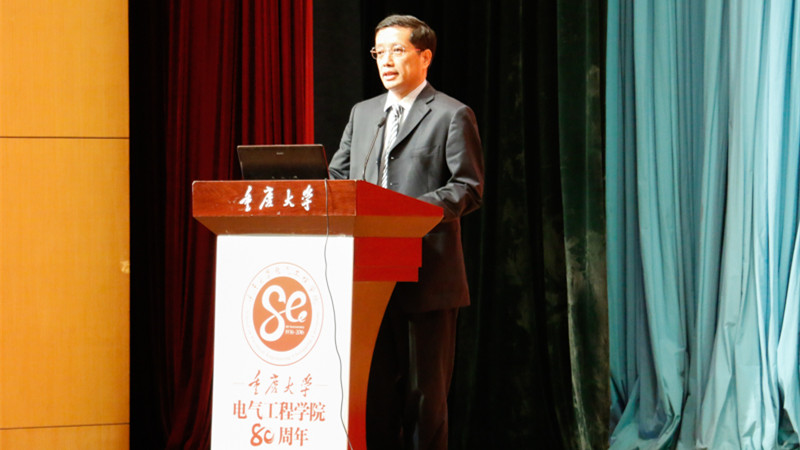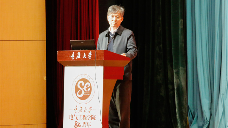 陈维江院士祝贺学院八十周年诞辰生日快乐,指出学院在江泽佳先生、顾乐观先生、孙才新等老一辈学者的带领下,形成了“传、帮、带”师德示范氛围、求真务实的科学态度、严谨治学的教学传统,为我国理论电工和高电压与绝缘学科的建设与发展做出了重要贡献,并祝愿重庆大学电气工程学院各项事业蒸蒸日上!