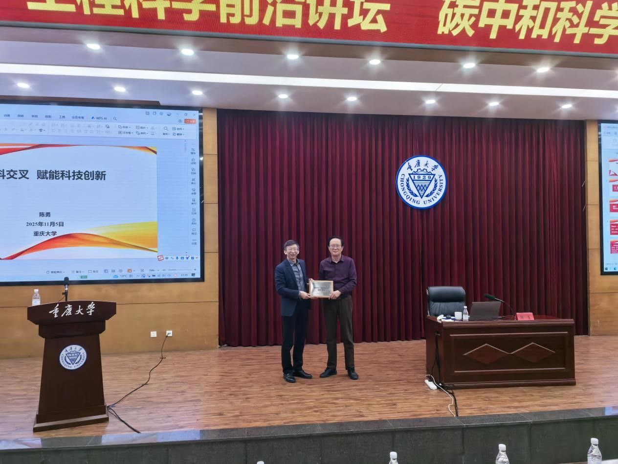 2025年11月5日,中国工程院院士、能源与环境工程技术专家陈勇受邀到访重庆大学,出席工程科学前沿讲坛暨碳中和科学与技术前沿讲坛。陈勇以“学科交叉 赋能科技创新”为题,分享了其在该领域的深刻洞察与前瞻思考。