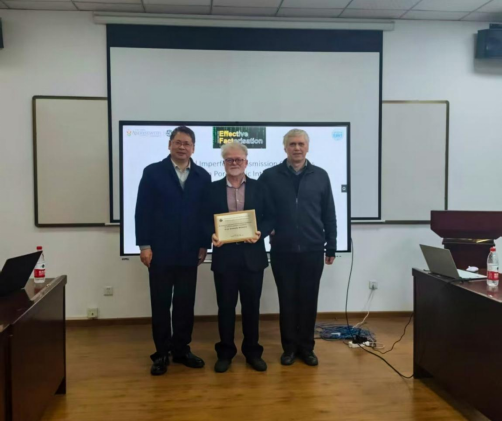 Mishuris院士的精彩报告引发了在场师生的浓厚兴趣。报告结束后,大家围绕相关学术问题展开了热烈而深入的讨论。最后,Borodich教授与金晓清教授代表工程学部向Mishuris院士赠送了纪念奖牌。