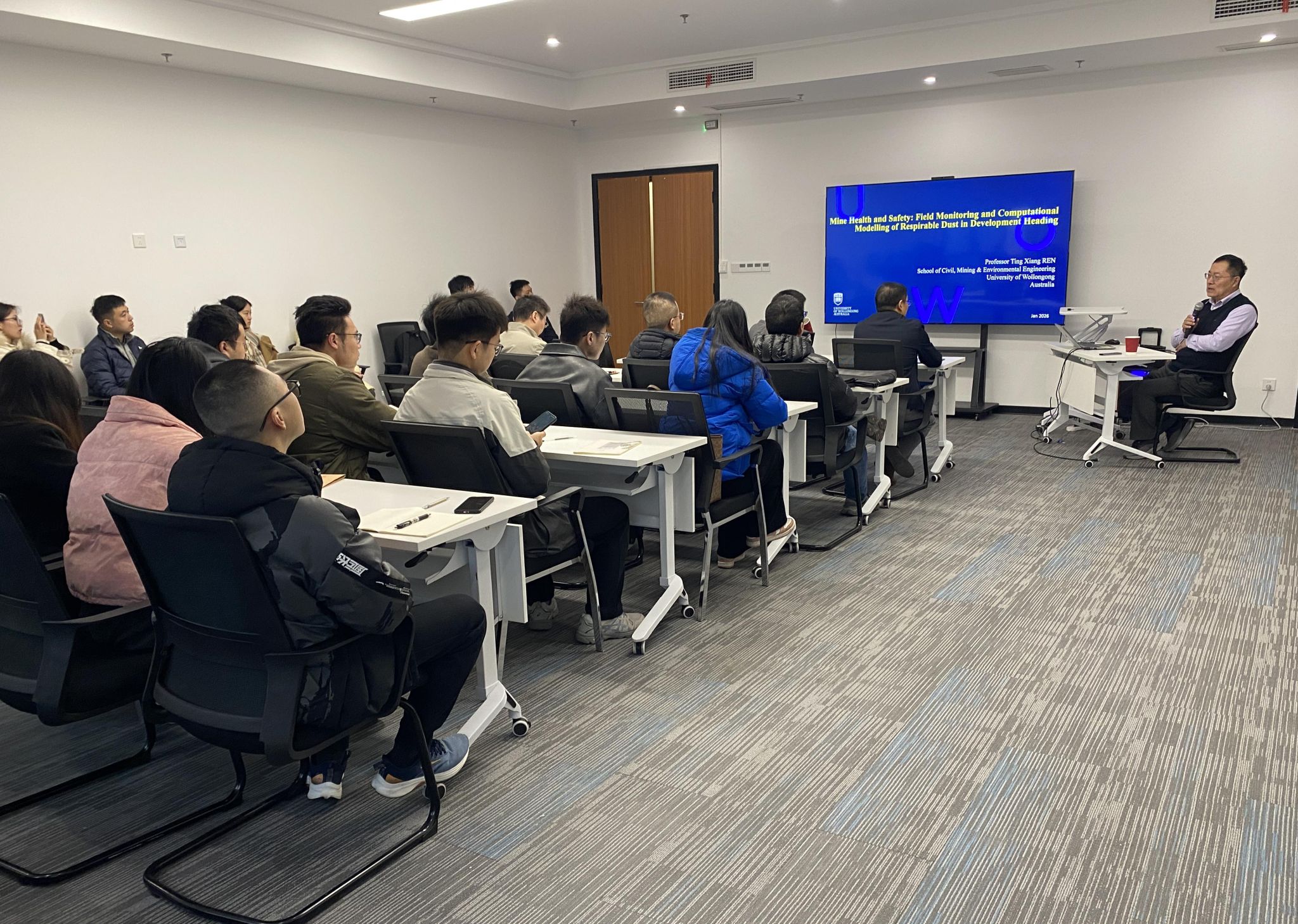 2026年1月19日上午,应资源与安全学院邀请,澳大利亚沃隆港大学任廷祥教授到访重庆大学,并作题为“Mine Health and Safety: Field Monitoring and Computational Modelling of Respirable Dust in Development Heading”的专题讲座。本次讲座由资源与安全学院院长聂百胜教授主持,讲座在虎溪校区工科大楼D510会议室举行,现场气氛热烈,众多相关领域的师生到场聆听。