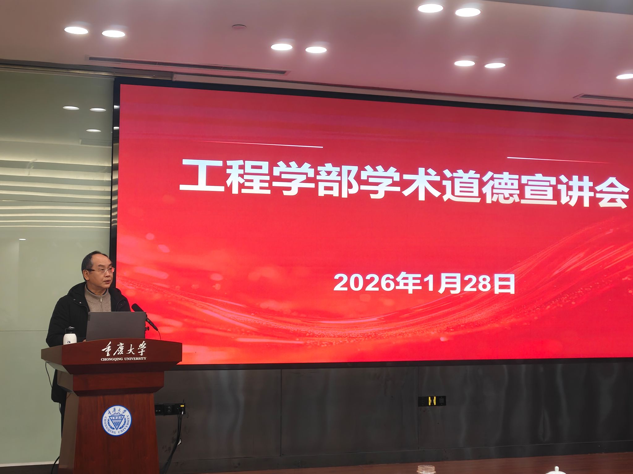 2026年1月28日上午,重庆大学工程学部学术道德宣讲会在A校园主教504会议室举行。副校长、工程学部主任卢义玉作动员讲话,校科协秘书长、学术道德专委会副主任周斌作专题宣讲。工程学部所辖6个学院的党政负责人、教师代表及博士、硕士研究生代表参会。会议由工程学部综合办公室主任任明主持。